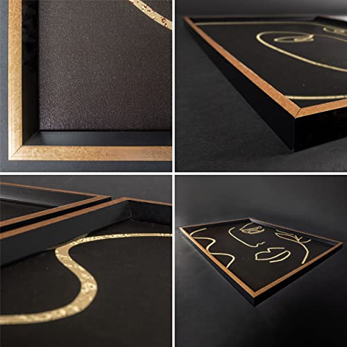 DekoArte - Quadri Decorativi con Cornice | Decorazione soggiorno| Trittici Decorativi Per Sala o Camera da letto | moderno | Immagine stampata MDF | Dorato, Nero | 3 pezzi 150x70 cm
