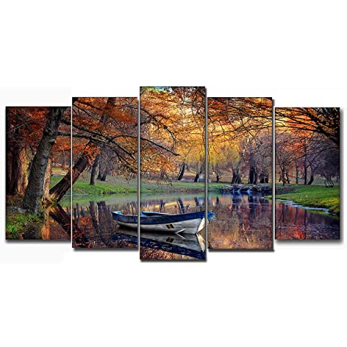 DekoArte 120 - Quadri moderni Stampa di Immagini Artistica Digitalizzata | Tela Decorativa Per Soggiorno o Stanza da letto | Stile Paesaggio Autunno Acqua Tonalità Marroni Natura | 5 Pezzi150 x 80 cm