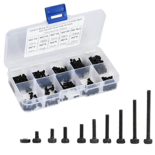 Delaman Vite a esagono incassato, 300 Pezzi Set di Viti a Esagono Incassato Kit di Bulloni e Dadi In Acciaio Legato 12.9 Grado m2
