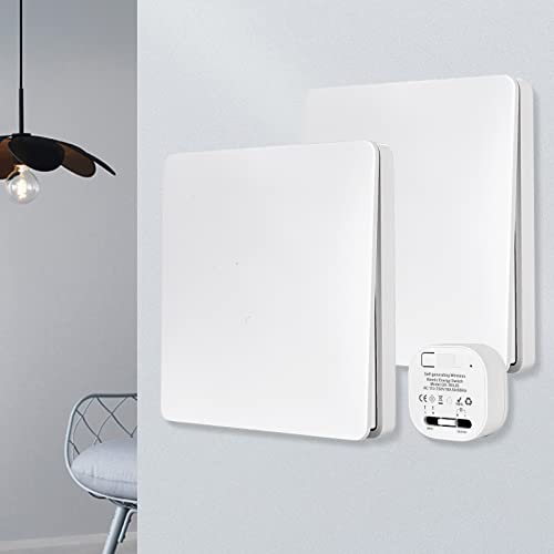 Delamiya Set di interruttori radio, interruttore della luce senza batteria, interruttore radio con ricevitore, impermeabile IP67, senza cablaggio, piastra da parete, 2200 W