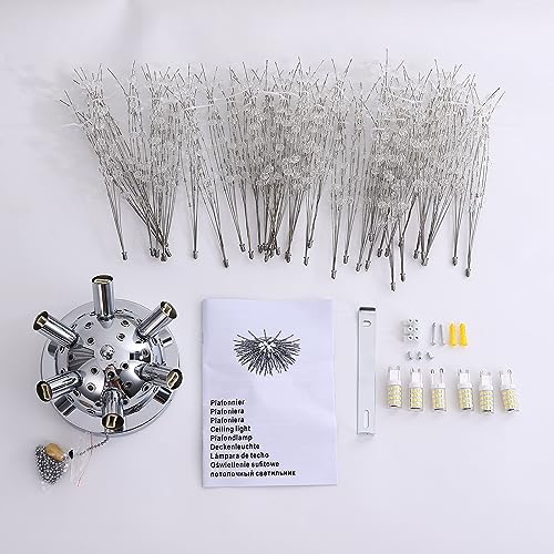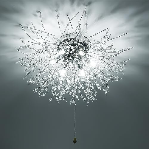 Delaveek Lampadari Moderna a Soffitto, Lampada Cromato Fuoco D'artificio, 6 luci G9, Plafoniere da Luxury Soffitto in Cristallo, Lampada a Sospensione per Soggiorno, Sala da Pranzo, Cucina, Corridoio