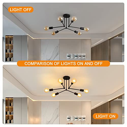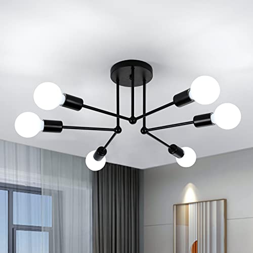 Delaveek Sputnik Lampadario Industriale, 6 Luci Plafoniera da Soffitto Vintage, E27 Moderna Metallo Lampadario per Soggiorno, Camera da letto, Cucina, Diametro 70CM (Senza Lampadine)