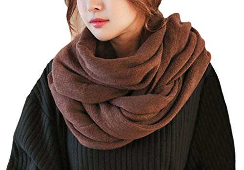 DELEY Donna Maglia Sciarpa Lunga Scialle Avvolgere Unisex Autunno Inverno Caldo Sciarpe di Lana Tinta unita Marrone