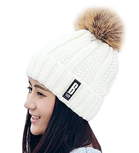 DELEY Donna Ragazze Cappello In Maglia Peluche Spessa Lana Berretto Sci Snowboard Inverno Caldo Skullies Bobble Beanie Bianco
