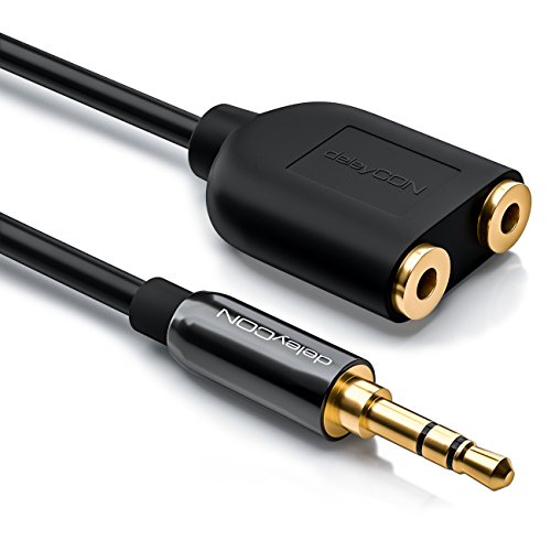 DeleyCON Adattatore Jack Audio Stereo - 2x Jack 3,5mm Femmina a 1x Jack 3,5mm Maschio - Nero