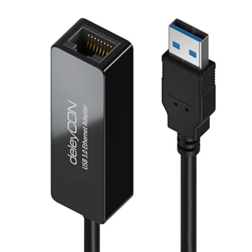 DeleyCON Adattatore LAN USB 3.0 Adattatore di Rete Gigabit Ethernet 1000Mbit da USB A a RJ45 PC Notebook Ultrabook Tablet-PC Windows Mac - Nero