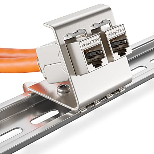 DeleyCON 2x CAT6a Modulo Jack Keystone con 2x Adattatore 2 Porta per Barra DIN Come Set Schermatura in Metallo STP Presa RJ45 Rete 10 Gbit/s Montaggio a Scatto per Barre da 35mm