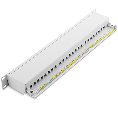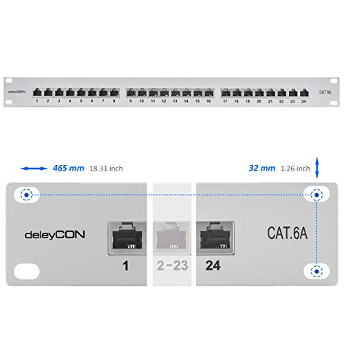 DeleyCON CAT6a Patch Panel 24 Porte del Desktop 19" Pollici Montaggio Rack Assemblaggio del Server 24x RJ45 Schermato TIA568A TIA568B - Grigio Chiaro