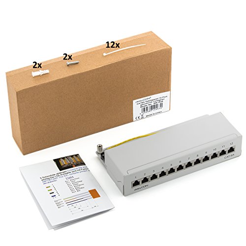 DeleyCON CAT6a Patch Panel 12 Porte del Desktop & Montaggio a Parete - Schermato - Presa RJ45 12x - TIA568A TIA568B - Grigio Chiaro