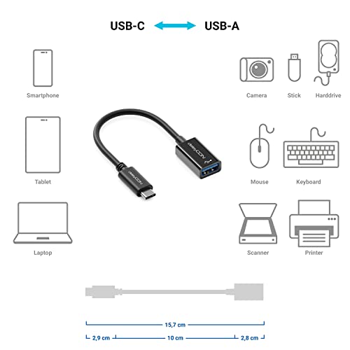 DeleyCON Cavo Adattatore da USB-C a USB-A OTG - USB 3.0 5Gbit/s - Da Connettore USB-C a Presa USB-A - per PC Computer Laptop Smartphone 17cm - Nero