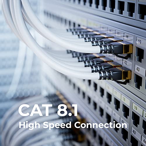 DeleyCON 10m Cavo LAN CAT8.1 Cavo Patch Cavo di Rete - RJ45 Cavo LAN DSL Rame Schermatura S/FTP 2000 MHz 40 Gbit - Cavo Ethernet CAT.8 Spina RJ45 Placcata Oro - Bianco