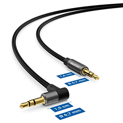 DeleyCON 1m Cavo Aux 3,5mm Cavo Jack Audio Cavo Stereo Cavo in Cotone e Connettori in Metallo - Spina Dritta a Spina Angolata a 90° - Telefono Smartphone Tablet Cuffie HiFi Automobile