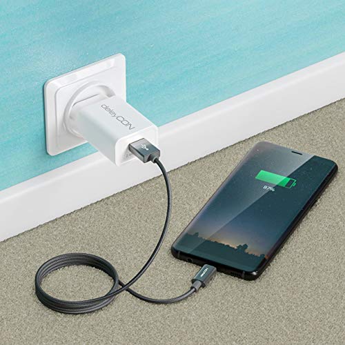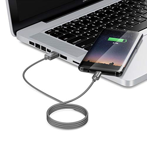 DeleyCON 2m Cavo USB C - Cavo di Ricarica & Dati con Connettore in Nylon + Metallo - USB C a USB A - Compatibile con S20 S10 S9 S8 Serie Note 8 Note 9 Chromebook ecc. Modelli con Presa C - Grigio