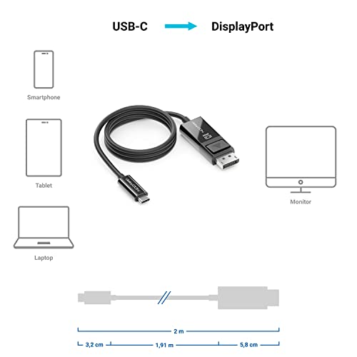 DeleyCON 2m Cavo USB-C a DisplayPort - 4K@60Hz UHD 2160p - Adattatore Convertitore - Da PC Laptop Smartphone a Monitor DP - Nero