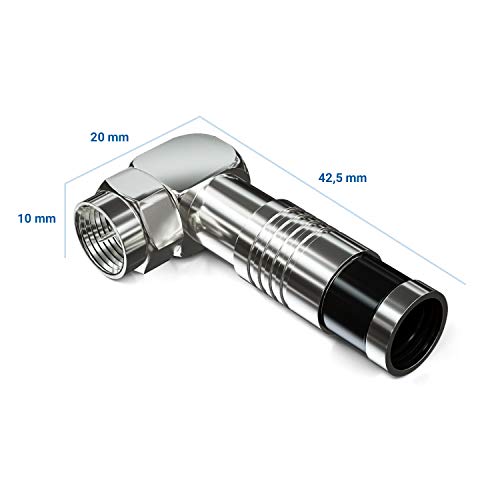 DeleyCON 10x F Connettore a Compressione 7,2mm con Angolo a 90° Connettore a F per Cavo Coassiale SAT TV Connettore a Compressione per Cavo SAT TV ad alta Perdita di Ritorno Design Robusto