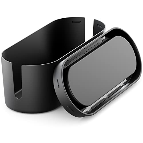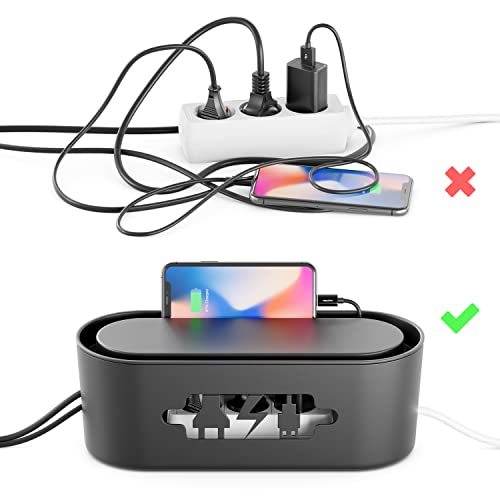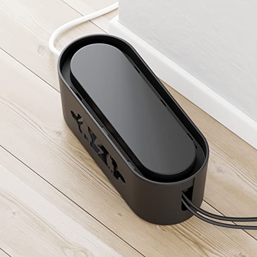 DeleyCON Gestione Cavi Box Cavo Organizer Box Casetta Cavi per Ciabatta 32cm x 12,5cm x 11cm Plastica Robusta 2 Guide Laterali per Cavi Protezione e Sicurezza Nero