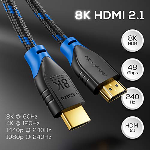 DeleyCON - 1m - 8K HDMI 2.1 Cavo 48G - Nylon - 8K@60Hz / 4K@120Hz / 1080P@240Hz - 7680x4320p Dolby DTS HDR eARC CEC UHD-2 Ethernet - Nero