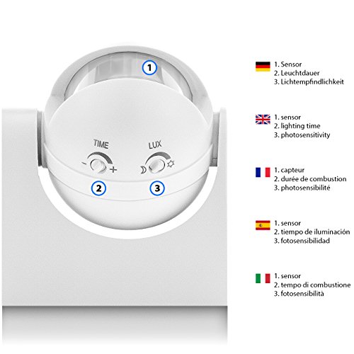 deleyCON Rilevatore di movimento a infrarossi // Concepito per gli interni e gli esterni // Prova di schizzo // Il sensore di movimento può essere inclinato per un angolo ottimale // Montaggio semplice & veloce