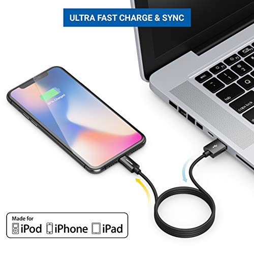 DeleyCON 2m Lightning 8 Pin Cavo di Ricarica USB Cavo Dati Certificato MFI per Apple iPhone 14 Pro Max 14 Pro 14 Plus 14 SE 13 Pro Max 13 Pro 13 Mini 12 Pro Max 12 Pro 12 Mini - Nero