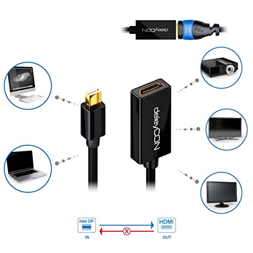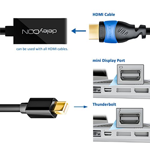 DeleyCON Mini DisplayPort a Cavo Adattatore HDMI 4K UHD 2160p Full HD 1080p 3D Compatibile con Thunderbolt 1 e 2 Mini DP Maschio a HDMI Femmina - Nero