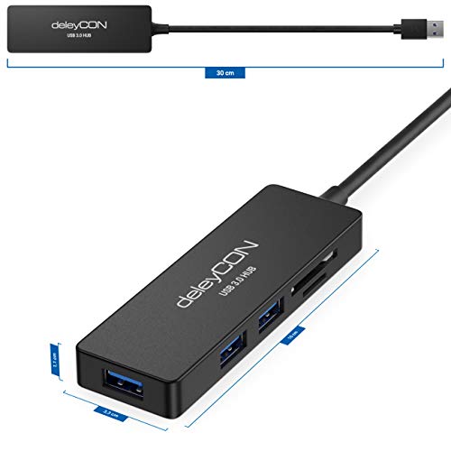 DeleyCON 3 Porte USB 3.0 HUB con Lettore di Schede HUB con Lettore di Schede di Memoria SDHC Micro SD Windows & Mac 3x USB3.0 Distributore di Porte USB 3x USB3.0