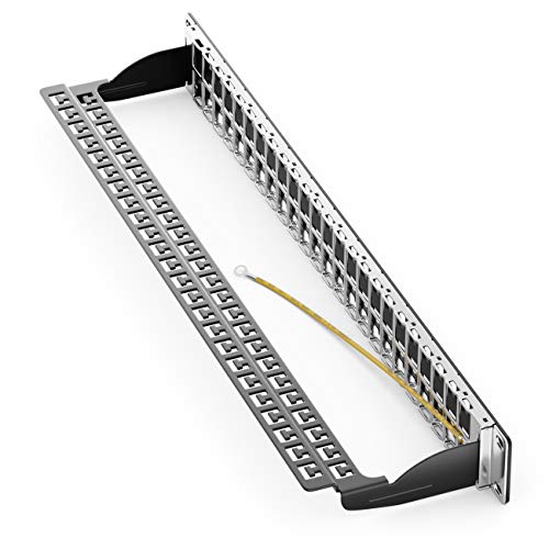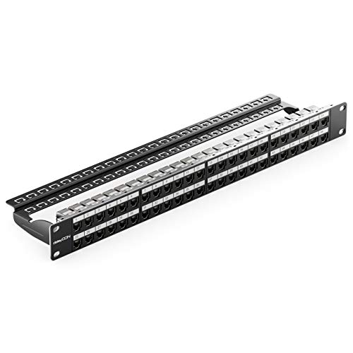 DeleyCON 48 Porte Patch Panel Pannello Patch Modulare per Moduli RJ Keystone 1HE (1U) 19 Pollici Montaggio Rack CAT5 CAT6 CAT7 CAT8 Compatibile LAN Rete Nero