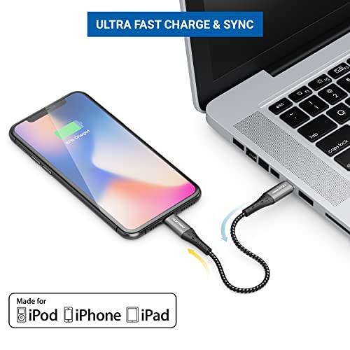 DeleyCON 0,15m USB-C a Lightning 8 Pin Nylon Cavo di Ricarica Cavo Dati Ricarica Ultra Veloce Certificato MFi per Apple iPhone 14 13 12 11 Pro Max Mini Spina in Metallo Consegna di Energia