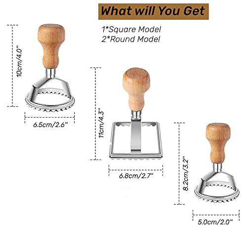 Delgeo Tagliapasta, Taglia Ravioli Stamp Maker-- Rullo per Pasta Resistente con Manico in Legno, Adatto a Diverse Dimensioni e Tipi di Ravioi e Ravioli, Set di 4