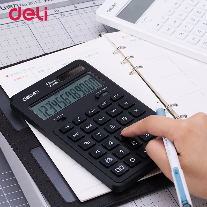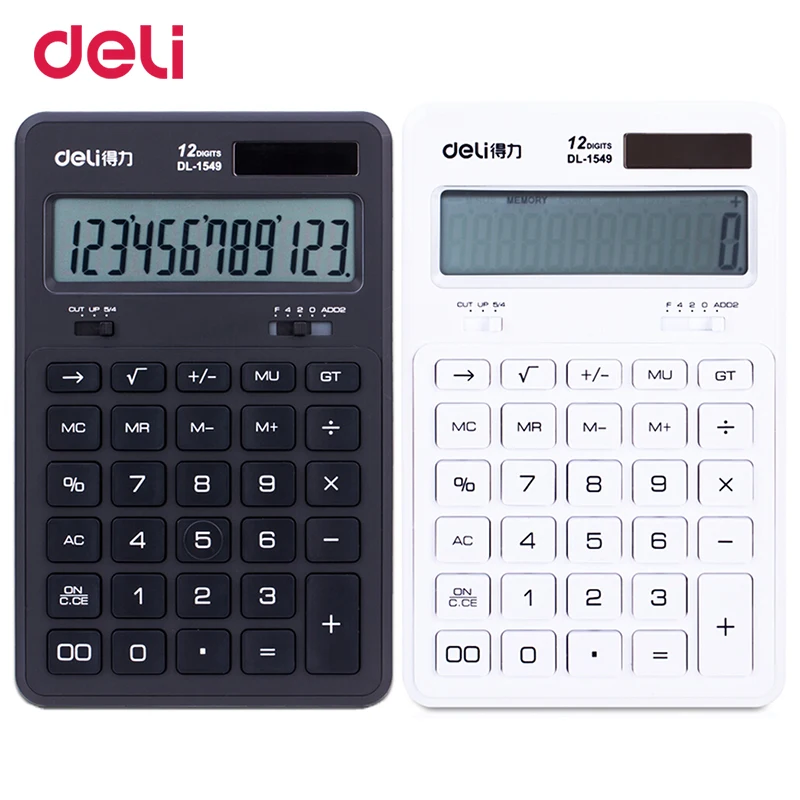 Deli Solar Energy 12 Digits Adjustable viewing angle desktop calculator profession durable plastic buttons for office Finance