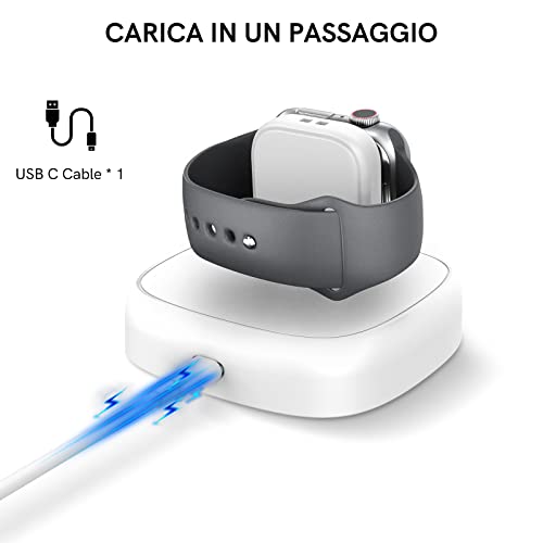 CARICATORE PER OROLOGI A DOPPIO SCOPO: Il caricabatterie è staccabile, comodo da usare da solo come caricabatterie wireless USB iWatch portatile o assemblarli insieme come supporto di ricarica da tavolo