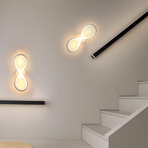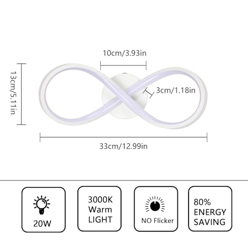 【Applique LED Specifica】Il applique murale led design curvo della barra luminosa ha un effetto visivo perfetto e il design geometrico a figura 8 si abbina all'arredamento moderno, l'applique a led permette allo spazio abitativo di emanare un bagliore elegante.