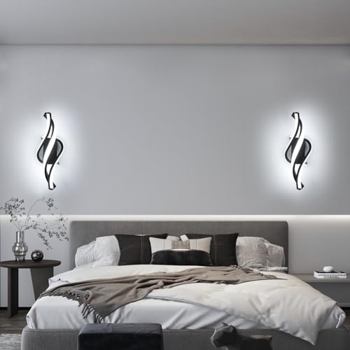 【Facile da Installare】Lampada da parete moderno curva ha una struttura semplice, la confezione include gli accessori per l'installazione e le istruzioni, non sono necessarie noiose fasi di installazione, ma per la tua sicurezza, è meglio installare sotto la guida di un professionista. applique da parete nero facile da pulire.