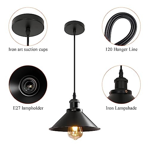 DELIPOP Lampada a Sospensione Industriale, Vintage Metallo Lampadario da Soffitto in Stile Edison Attacco E27 Plafoniera da Soffitto per Cucina Caffè Bar Sala da Pranzo Soggiorno, 22cm, Nero