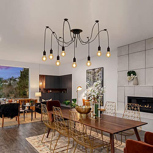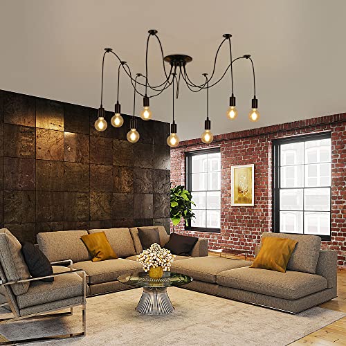 DELIPOP Lampada a sospensione Vintage Industriale, Lampadario a Forma di Ragno con 8 Bracci Pendenti, Regolabile in altezza, Plafoniera da Soffitto E27 per Camera da Letto, Soggiorno, Ristorante