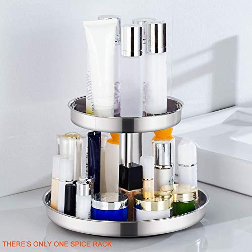 DELITLS - Portaspezie per armadi, cucina, spezie, giradischi, in acciaio inox, a 2 ripiani girevole, per spezie, organizer da cucina (argento)