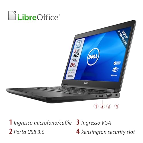 Dell Latitude 5490, Pc Portatile Notebook Pronto All'Uso, Display 14" HD, Intel Core i5-8th, Ram 8 Gb, SSD 240 Gb, Computer Portatile Con Pacchetto Libre, W10 (Ricondizionato)
