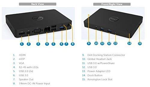 Dell WD15 Dock con adattatore da 130 W, USB-C, Type-C, FHD, 4K, USB 3.0, USB 2.0, Gigabit Ethernet, F7ANK JY6VF 5FDDV 452-BCDJ 452-BCCQ (rigenerato)