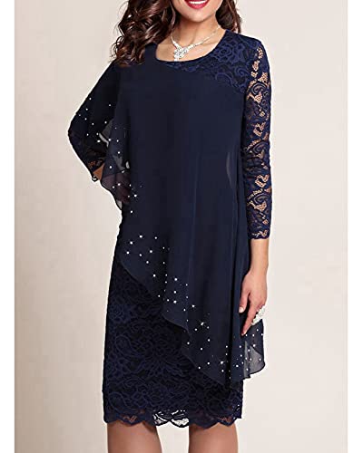Delle Donne Eleganti del Vestito da Sera Dell'increspatura Patchwork Scava Fuori Il Pizzo 3/4 del Blu Scuro