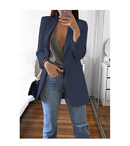 Delle Donne più Il Formato di Colore Solido Anteriore Aperto Blazer A Manica Lunga Slim Fit Lavoro D'ufficio Giacca Cardigan con Tasche (Dark Blue,XXL)
