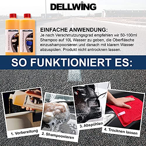 DELLWING shampoo per auto Wash & Wax con cera 2,5 l - shampoo altamente professionale per la tua autovettura - diluibile fino a 1:200 - brillantezza perfetta e profonda con effetto idrorepellente