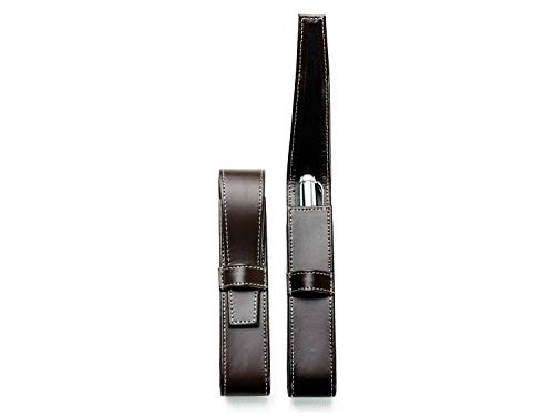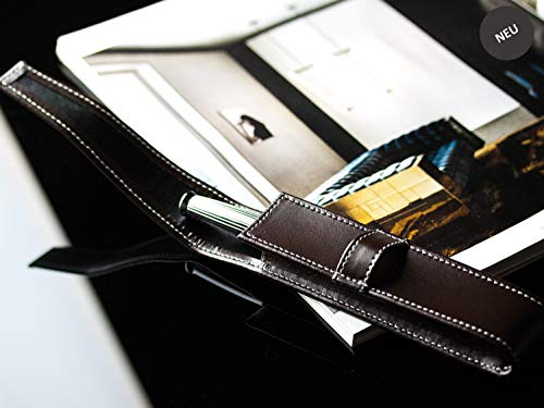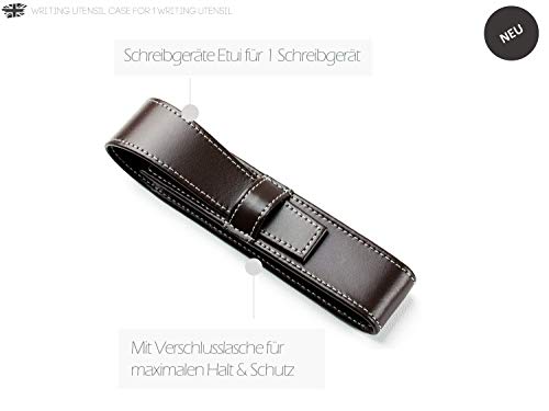 DELMON VARONE - Astuccio per penne e matite, in vera pelle marrone, con linguetta di chiusura per 1 penna, astuccio per penna a sfera o matita