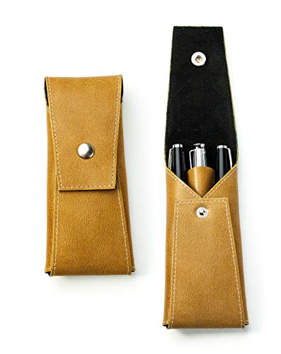 DELMON VARONE - Astuccio portamatite personalizzabile in Anilina pelle marrone pregiata, con chiusura a testina stampata per 3 penne di alta qualità
