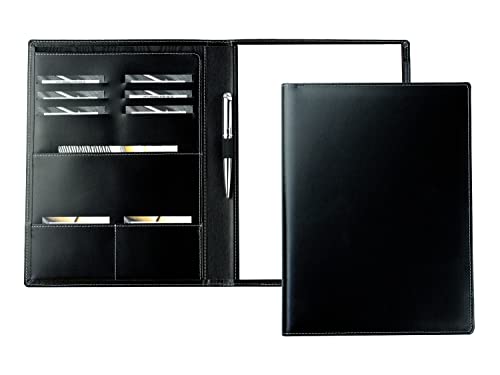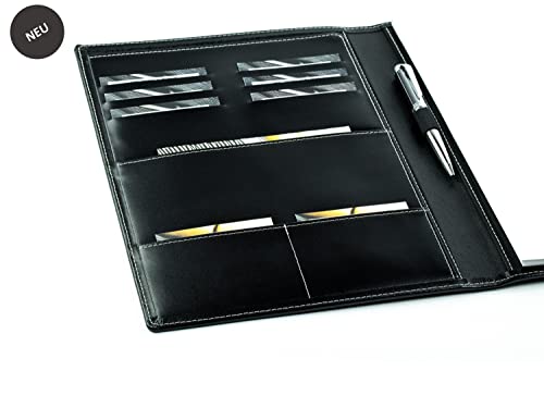 DELMON VARONE - Cartella Porta Documenti personalizzabile DIN A4 in pelle Cambridge Top Grain nero, Portadocumenti per conferenze Business Organizer con blocco note, portapenne e custodia per appunti