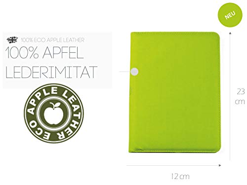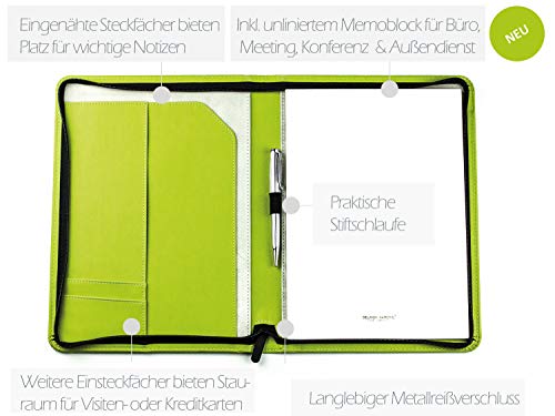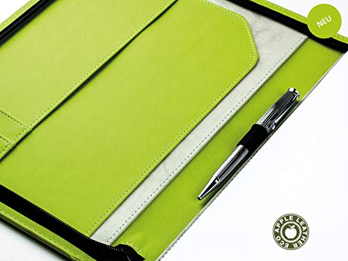 DELMON VARONE - Cartella Portadocumenti A4 pelle di mela personalizzabile verde - Organizer Conferenza con blocco note, porta-penne e tasche portaoggetti - Custodia Organizzatore per documenti con zip