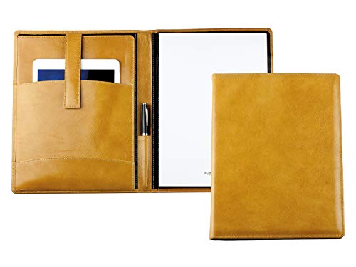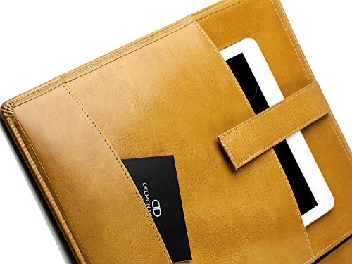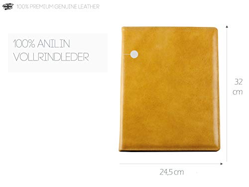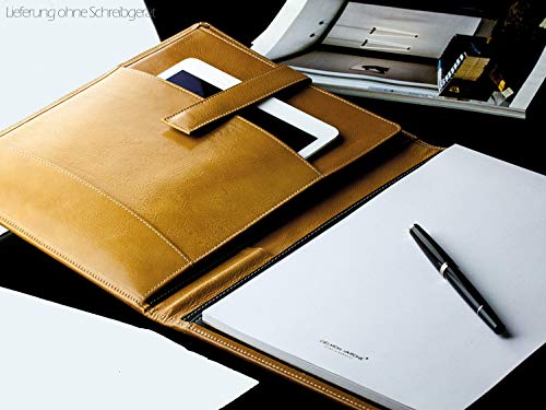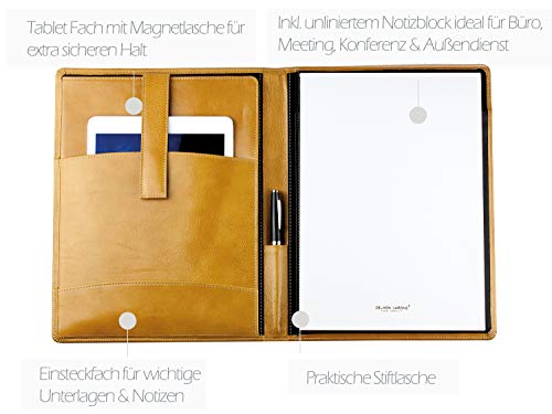 DELMON VARONE - Custodia da scrittura personalizzabile DIN A4 con scomparto per tablet in pelle marrone anilina premium, cartella organizer con blocco note, portapenne e patta magnetica