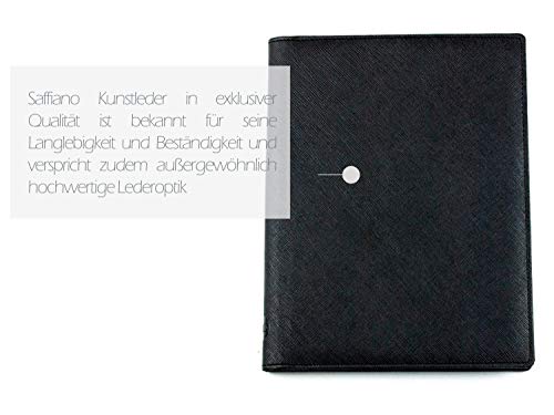 DELMON VARONE - Custodia da scrittura personalizzabile DIN A5 in similpelle di Saffiano nero, custodia Business Organizer con blocco note, passante per penna e tasche
