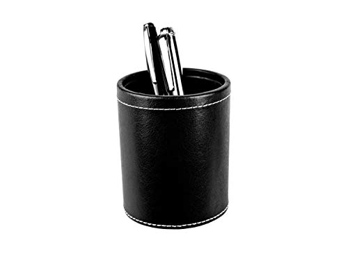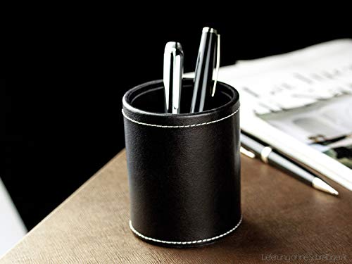 DELMON VARONE - tazza a matita in pelle di prima qualità all'anilina nera, portapenne con rivestimento interno in PU e lato inferiore in pile antiscivolo per scrivania e ufficio