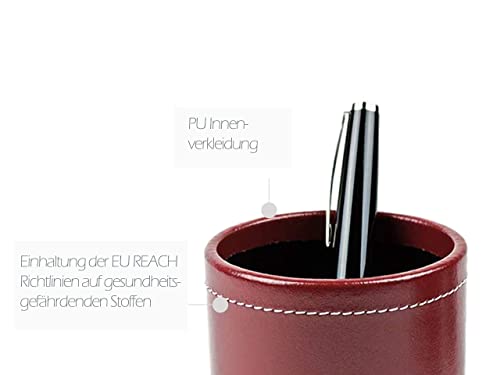 DELMON VARONE - tazza per matite in pelle premium Cambridge Top Grain rossa, porta penne con rivestimento interno in PU e lato inferiore in pile antiscivolo per scrivania e ufficio