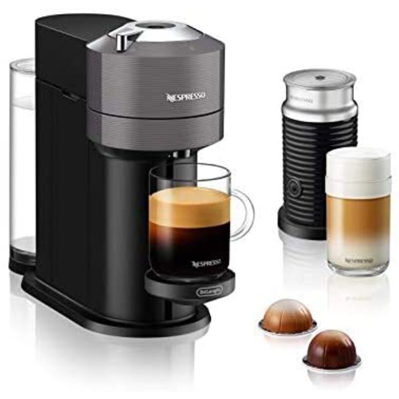 Dettagli tecnici Capacità del serbatoio 1.1 l Colore Grigio scuro opaco, Nero Dimensione del prodotto, larghezza 142 mm Dimensione, profondità 429 mm Dimensioni prodotto Altezza 314 mm Macchina da caffè - caratteristiche con Aeroccino Peso 4 kg Potenza 1500 W Tipo prodotto Macchina per caffè con capsule Macchina per spacchi DeLonghi ENV120.GYAE Le macchine da caffè Vertuo utilizzano una tecnologia di estrazione brevettata sviluppata da Nespresso, nota come tecnologia Centrifusion. Basta inserire una capsula e tirare la leva: Quando attivata, la capsula ruota fino a 4.000 giri al minuto, mescola il caffè macinato con acqua e crea la crema perfetta per godere del vostro caffè lungo preferito o dell'autentico espresso. Vertuo utilizza un sistema di estrazione intelligente che riconosce ogni caffè Nespresso. Grazie a un codice a barre sul bordo della capsula, i parametri di erogazione vengono impostati dalla macchina a seconda del caffè Nespresso selezionato.Create caffè o un espresso