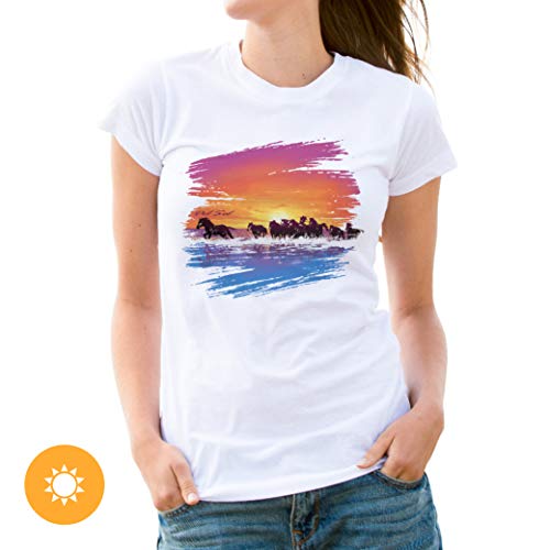 DelSol - Women Crew Tee - Wild Horse - Gli intricati Dettagli di Design prendono Vita con la Luce del Sole - Bianco - XL-XG-TG - 1 Pz